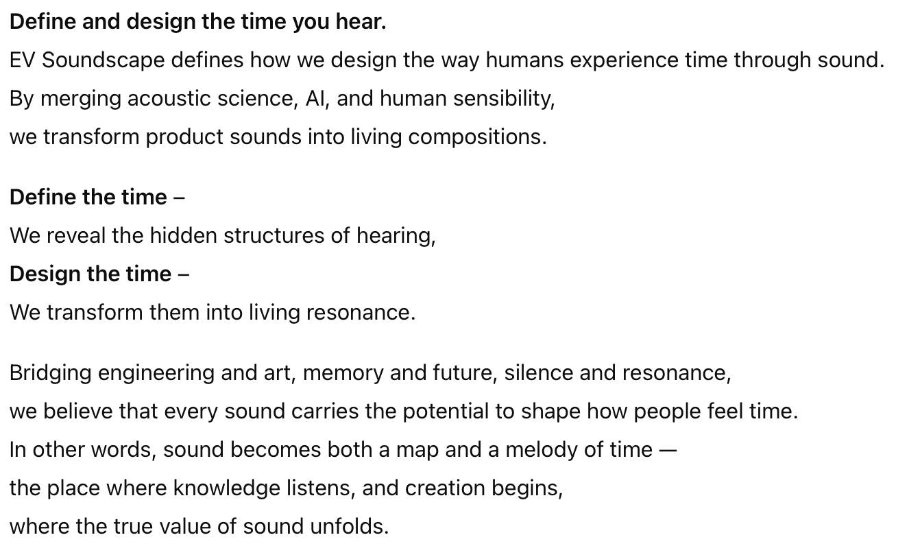 #EVSoundscape #DefineTheTime #DesignTheTime #SoundDesign #AI #Psychoacoustics#SoundQuality